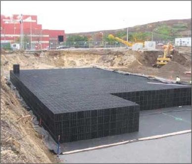 3、蓄水池:目前使用较多的是PP雨水收集模块,一般深埋地下,不会破坏周边环境的美观.其具有施工简单、造价成本低、使用寿命长、收集效率高、水质保持时间长等特点.